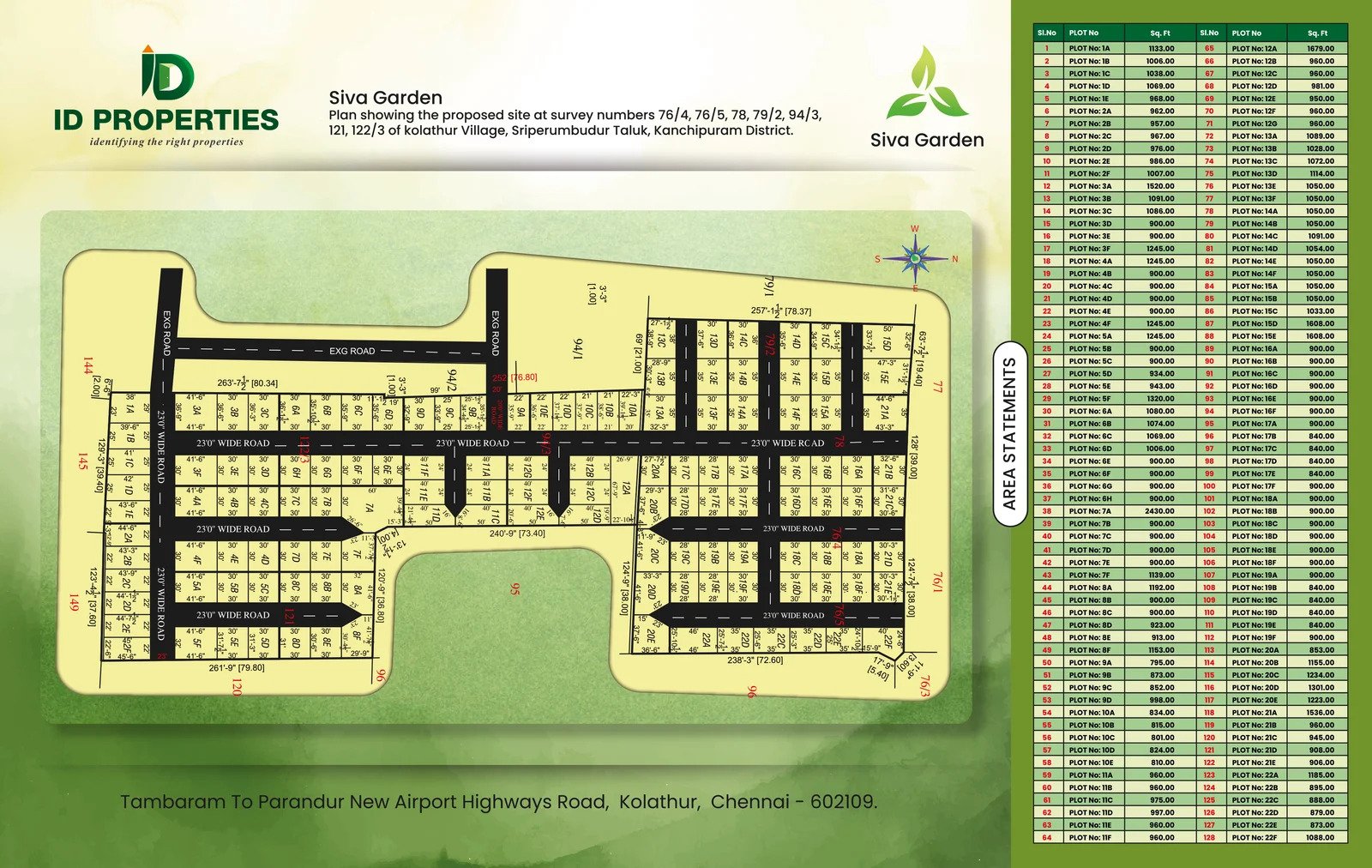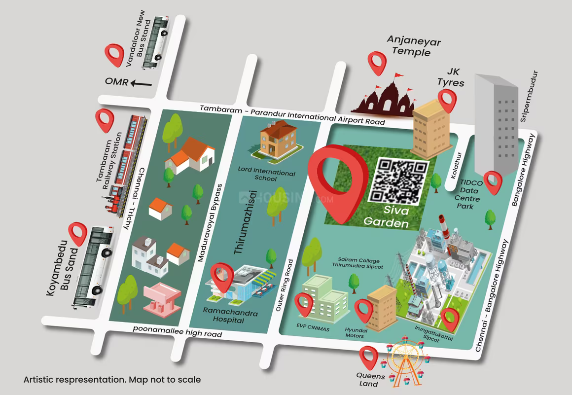 Just 20 minutes from major transport hubs—including the Kelambakkam bus terminal, Tambaram, Sriperumbudur, and the upcoming international airport—ID Properties Siva Garden offers easy commutes. It’s also only 10 minutes away from leading colleges such as TMG, Dhanalakshmi Engineering, Peri, and Sairam College, as well as top schools like Good Earth, Velammal Vidyashram, Alwin International, and Shree Niketan. Siva Garden provides an ideal setting for families, combining access to quality education with essential urban conveniences.